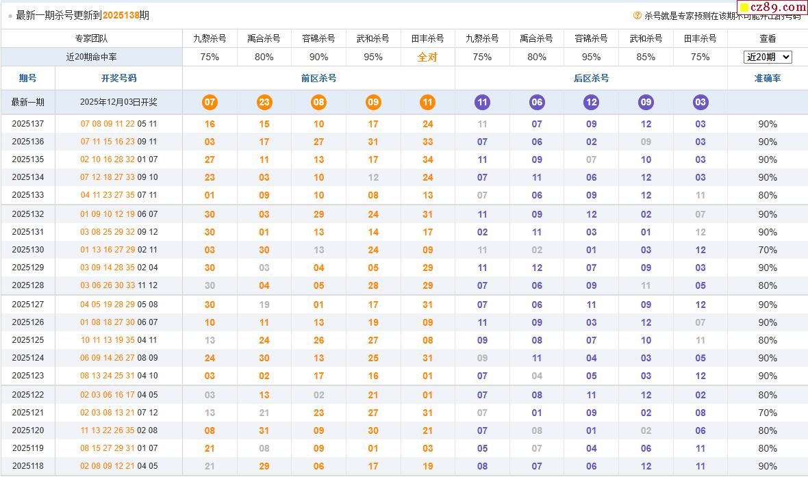 大乐透138期牛彩特邀专家前区后区杀号定胆图表
